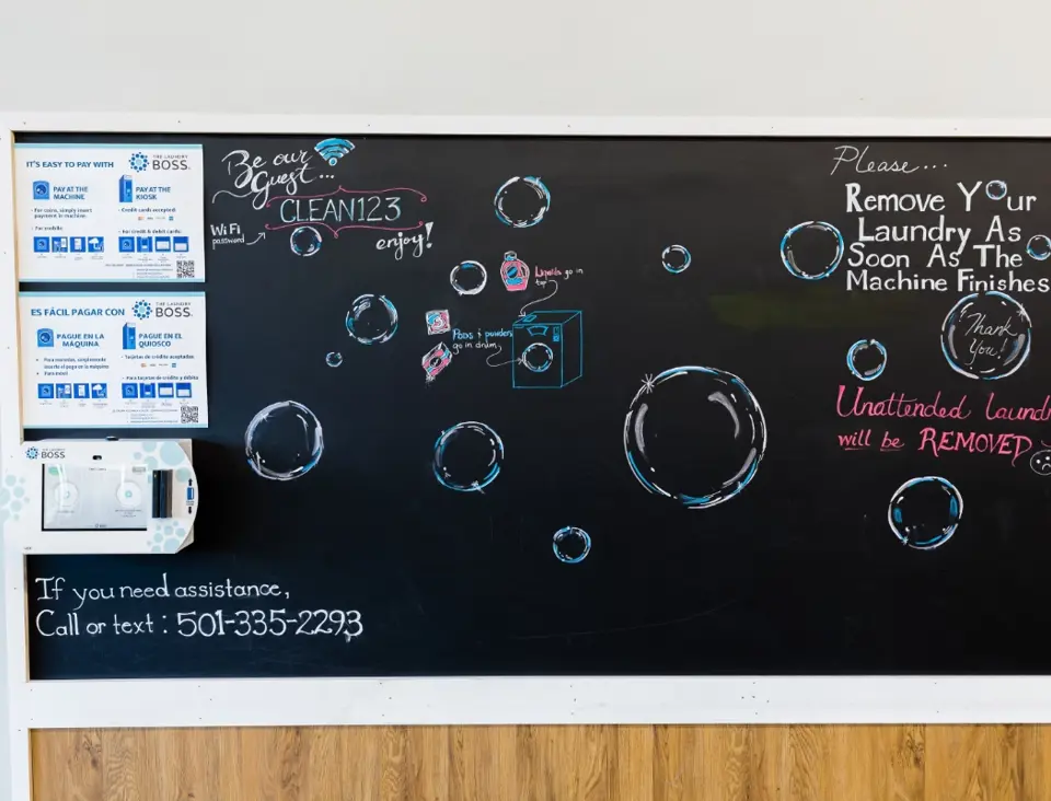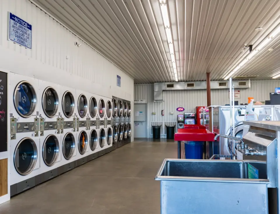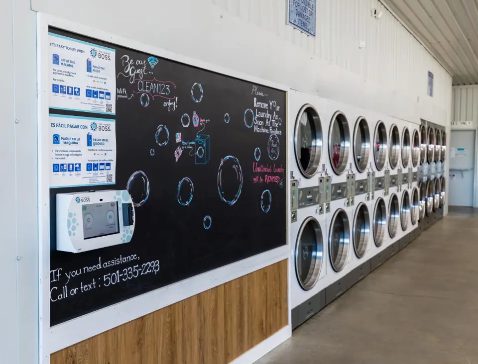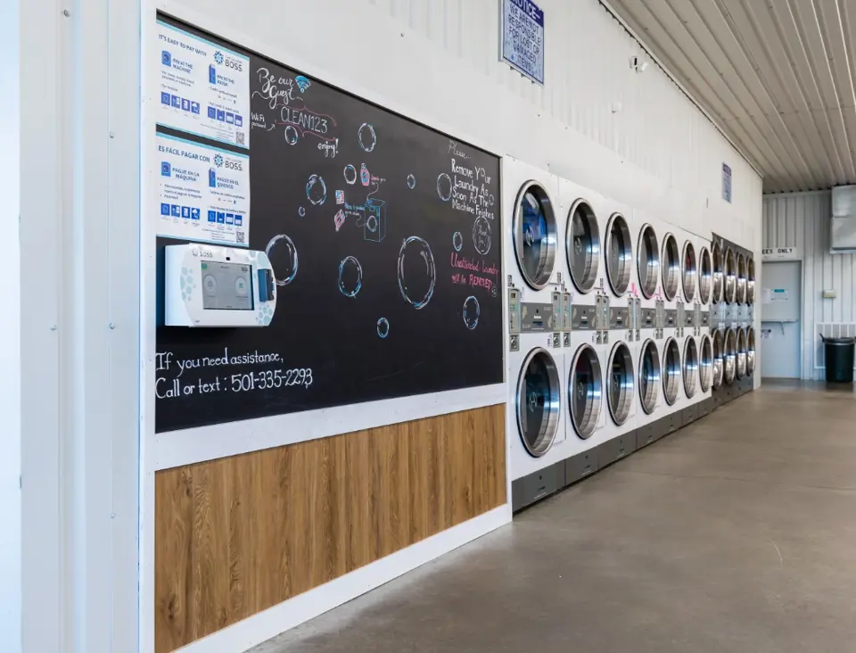 This location features large washers and dryers that easily handle comforters and large loads. Machines are coin, card, and app-operated. You can pay with cash, use our mobile app, or operate machines from our Laundry Boss kiosk, which accepts card payments.