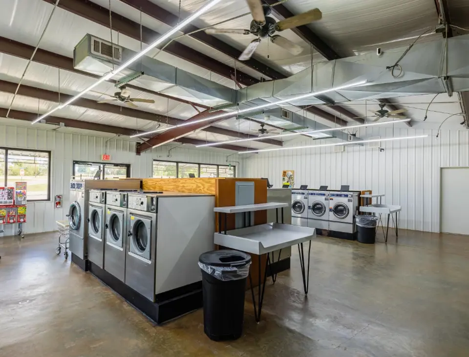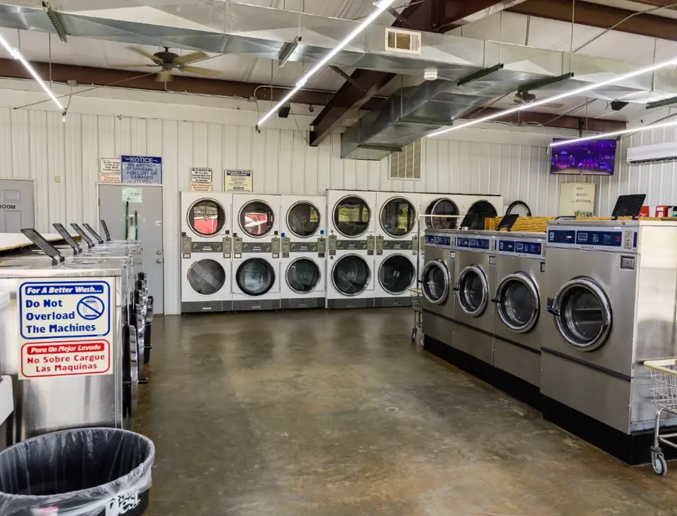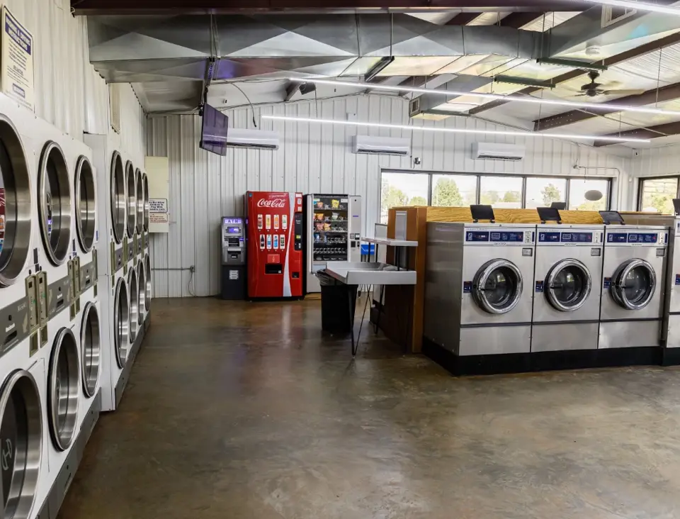 This location features large washers and dryers that easily handle comforters and large loads. Machines are coin, card, and app-operated. You can pay with cash, use our mobile app, or operate machines from our Laundry Boss kiosk, which accepts card payments.